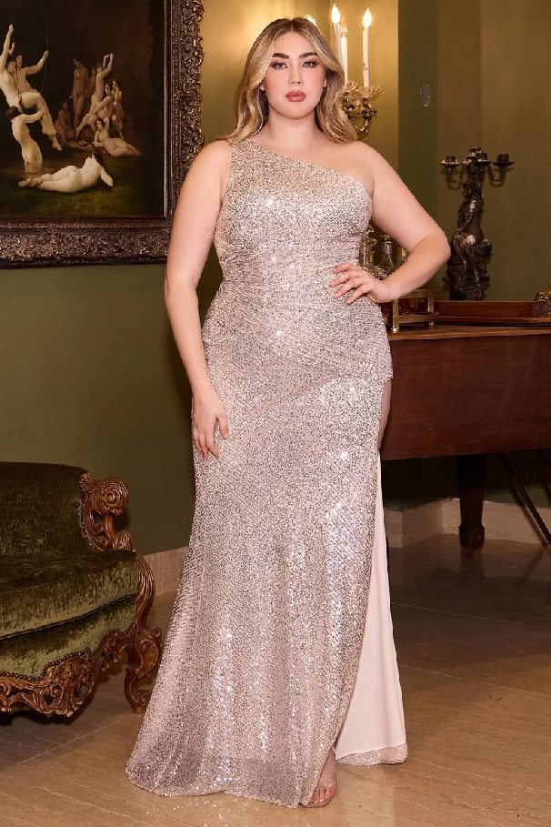 Elevate your style with this stunning one-shoulder sequin dress designed to turn heads. Its fitted silhouette and leg slit accentuate your figure while the gathered waist adds a flattering touch. Fully covered in shimmering sequins, this dress ensures you sparkle with every step. Perfect for making a confident, unforgettable impression wherever you go.
